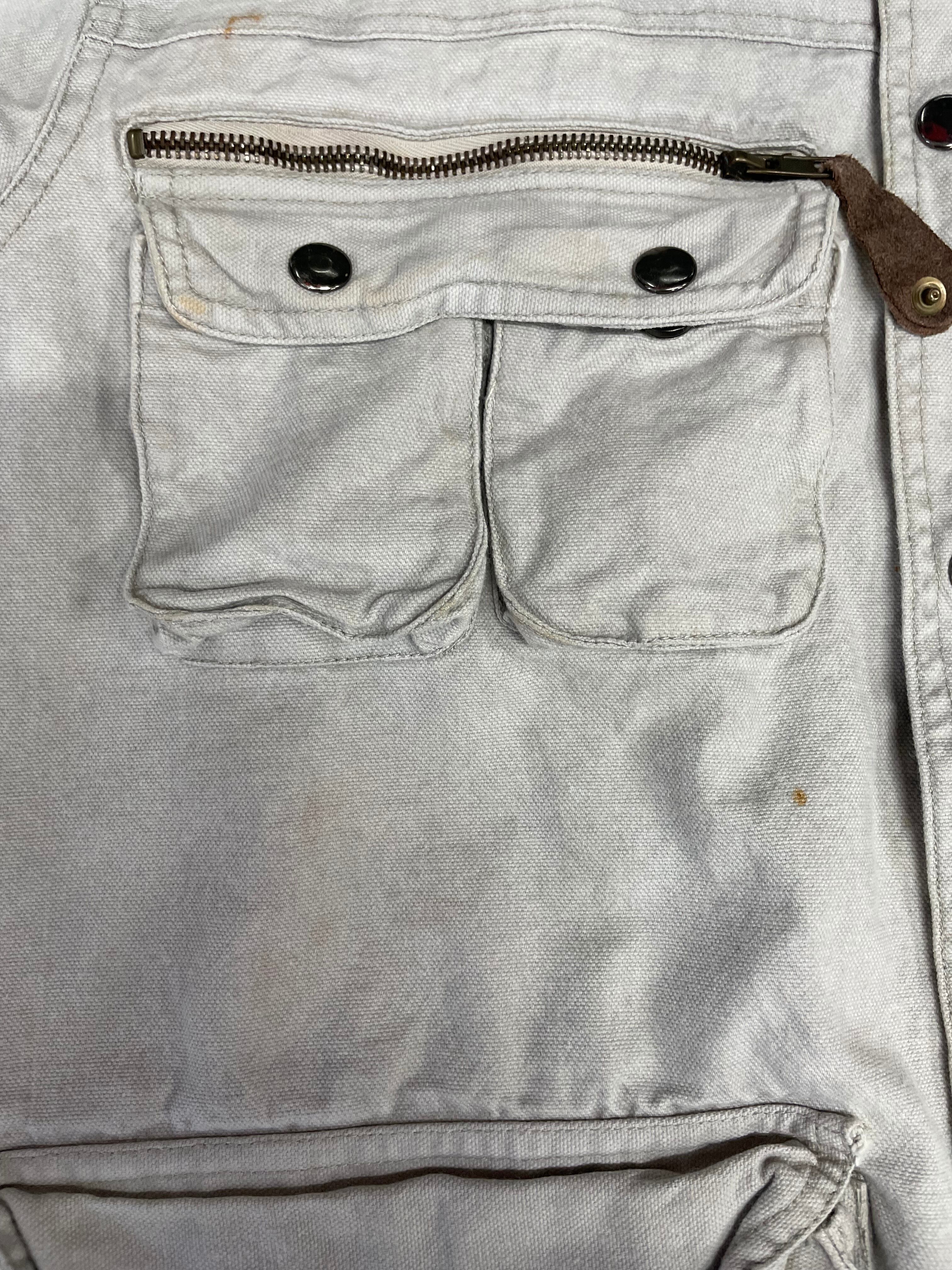 所々汚れ、右ポケットのスナップボタンが1つ壊れております。